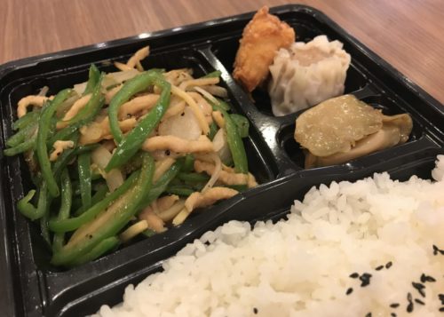 お弁当には、メインのおかずだけでも大満足な味とボリュームにも関わらず、シュウマイとから揚げ、ザーザイも盛り付けられ、ご飯の量もなかなかなもの。