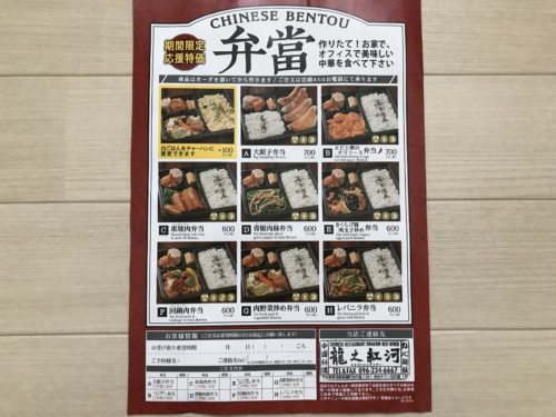 人気の中華料理店「ドラゴンレッドリバーゆめタウン光の森」で期間限定のお弁当をお持ち帰りしてきたよ