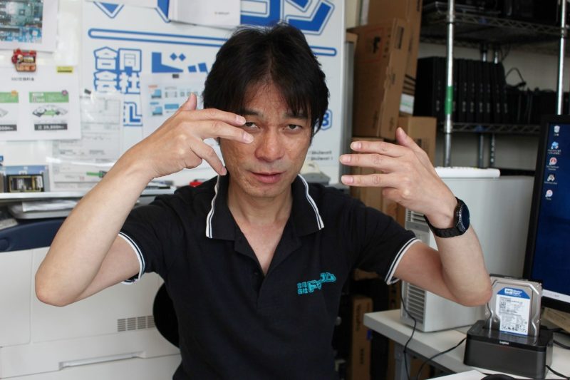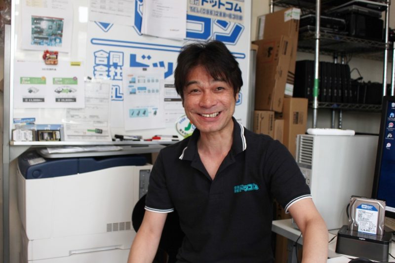 このごくごく普通のかき氷をこんな場所にテント立てて売ろうとしたのは、このパソコン屋さんの社長だそう。「いま中にいるよ」とのことでしたので、お邪魔して話を…