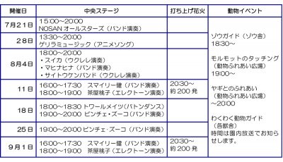 また、8月11日と9月1日は、20時半から打ち上げ花火も200発ほど上がりますので、それもまた楽しめそうですね。