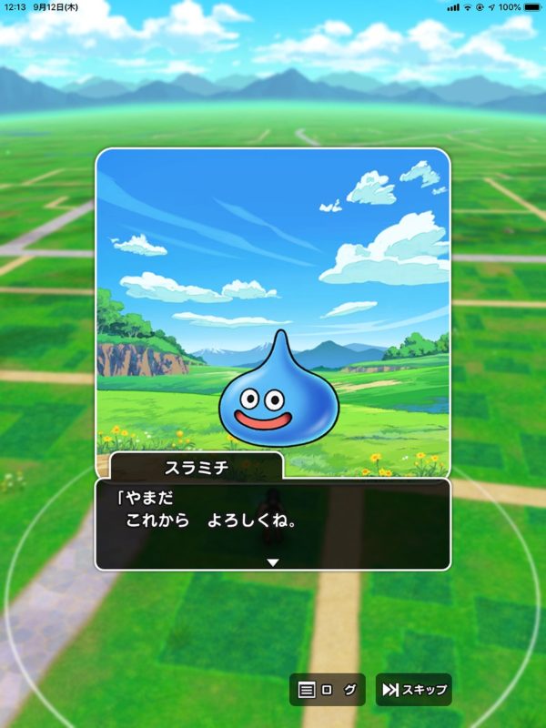 さっそくスライムと一緒に旅をします!このスライムは魔物ですがわるいスライムじゃないよ。