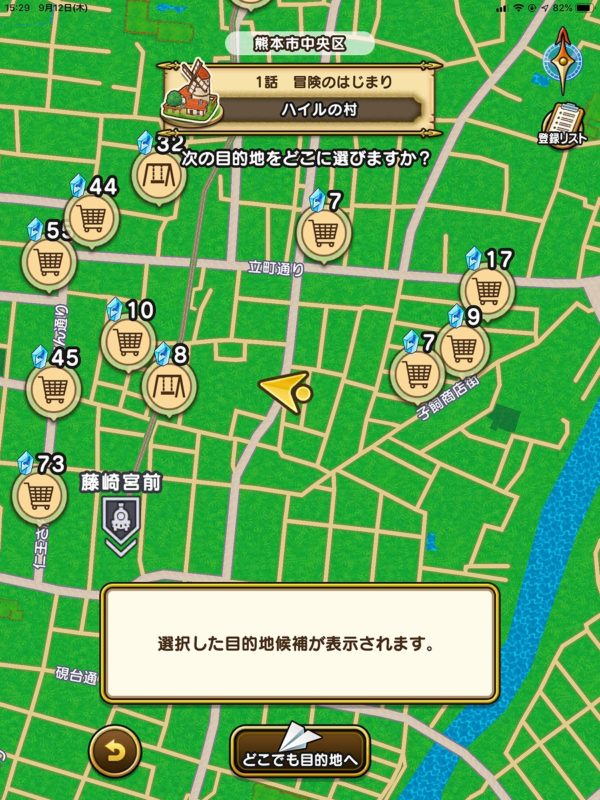 地図をもとに現実世界を歩くというと、一斉を風靡したポケモンGOをイメージする人も多いでしょう。まさしくそんな感じで現実世界とドラクエが融合しています!