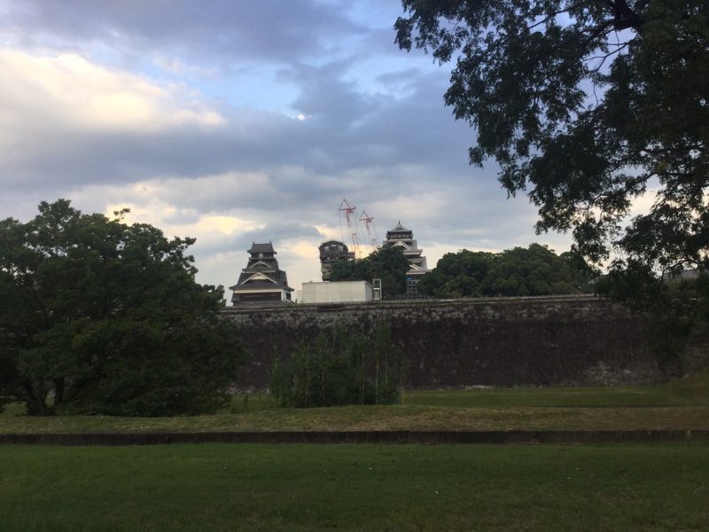 夕暮れ時、二の丸公園までやってきました。熊本城は目の前です。