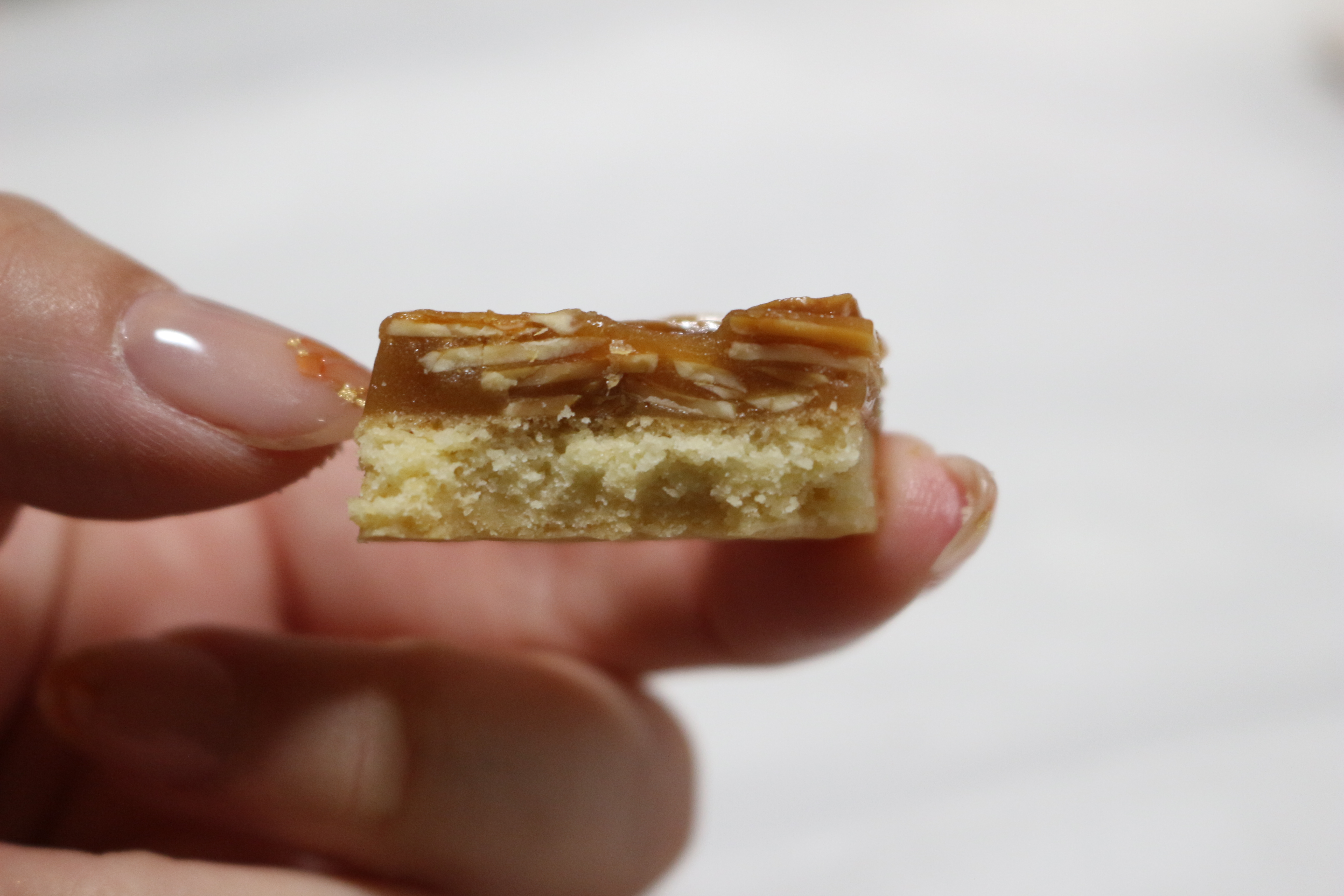ヌガーの層がこんなに分厚くてとっても濃厚。そして、サブレ生地はサクサク!この食感の違いがまた楽しい。満足度が高いです。