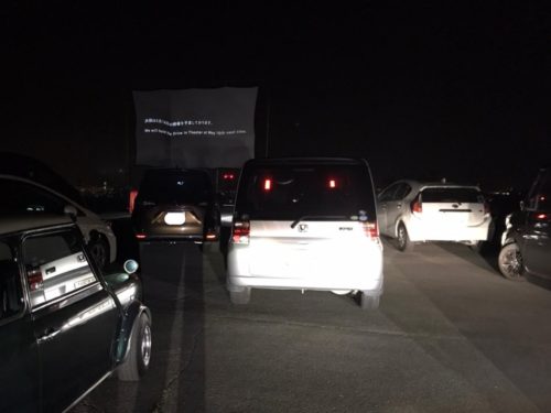 ドライブインシアターは、これまで17回上映されてきたそうですが、今回はミルク牧場移転記念と、コロナに負けるな企画で入場無料!ただ、現在休園中で、商品の行き場がなくなったミルク牧場の応援という形で、来場者に300円の商品購入をお願いする形での開催となりました。