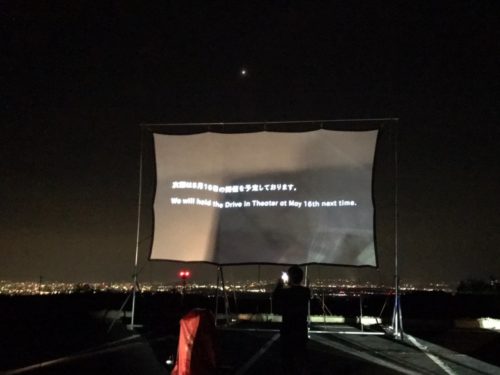 4月25日の夜に、30台限定の予約制で開催されました。阿蘇ミルク牧場に到着し、ゲートから入るとすぐ、ドライブスルーにて受付を行います。名前の確認と、スクリーンまでの道順やトイレの場所などを、丁寧に案内していただきました。