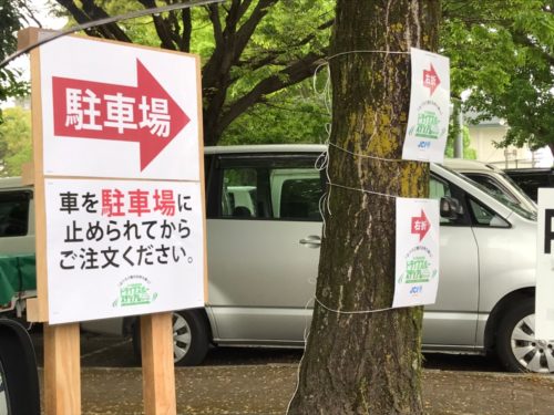 車を駐車場に止めて、買いたいものを決めて各店舗に電話し、注文内容や車のナンバーなどを伝えます。