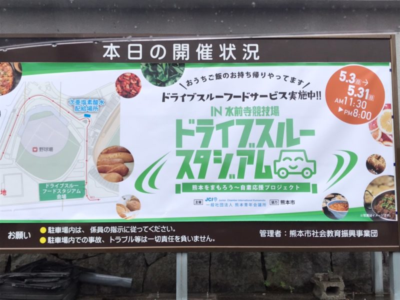 5月3日からスタートしたドライブスルースタジアムの会場は、水前寺競技場。
