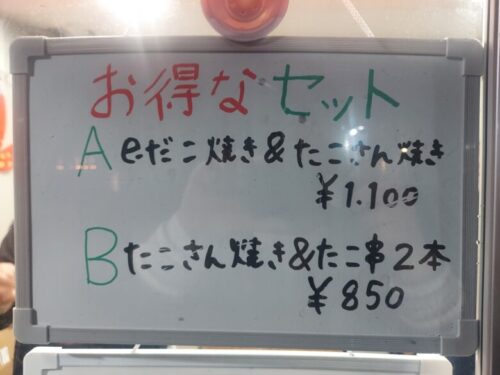 Bセットがタコさん焼きとたこ串2本。