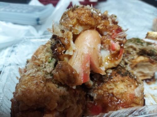 1個の半分がたこ、こんなたこ焼き見たことありません。