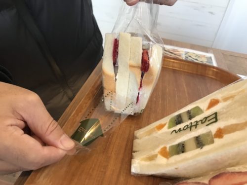 名前の通りいちご、あん、そして白玉がぎっしり詰まったサンドイッチです。