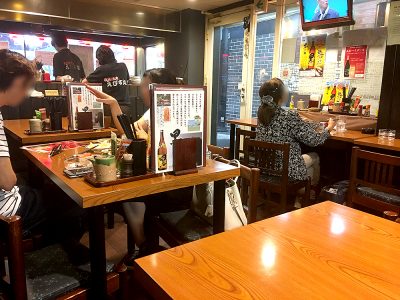 店内はテーブル席が並ぶ、普通の居酒屋さん。ランチタイムには昼食で訪れた方から、昼飲みを楽しむ方までさまざま。
