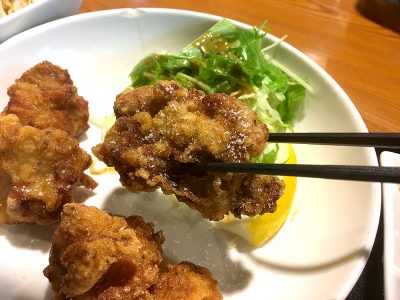 焼き鳥屋さんの唐揚げ定食ときくと心がおどります!もちろん、メインの唐揚げも美味しいですが、副菜もちゃんとついていて嬉しいです!