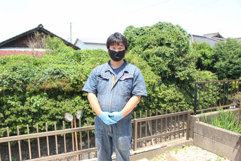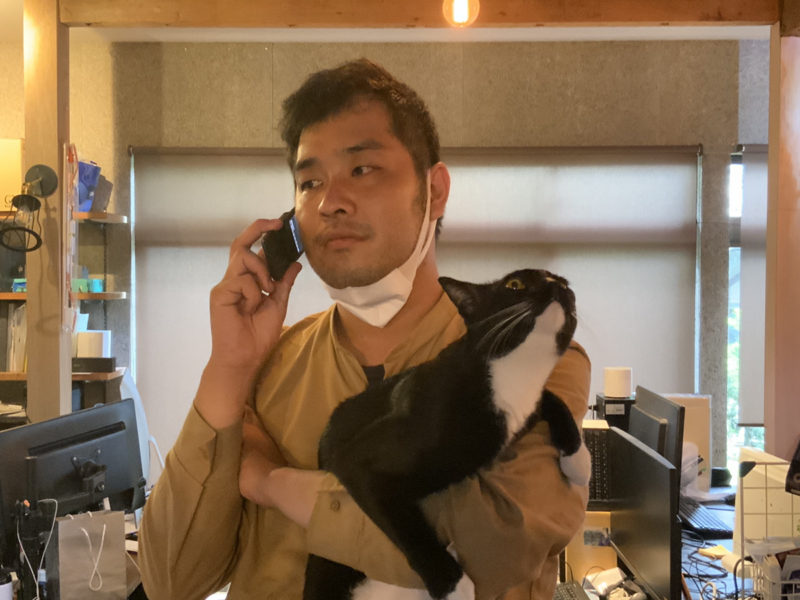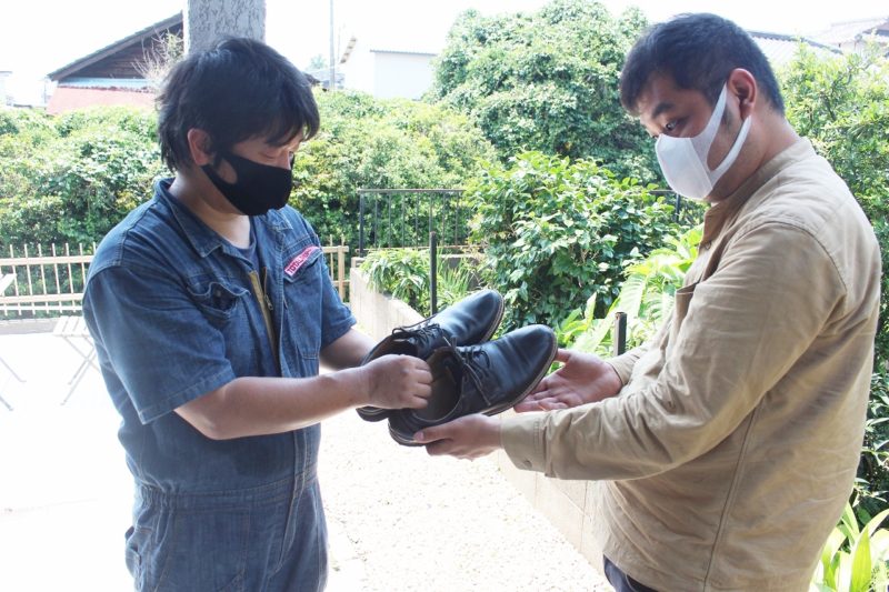 靴の修理とは知らず、事務所までやってきてくれたエコサポートの平和さん。