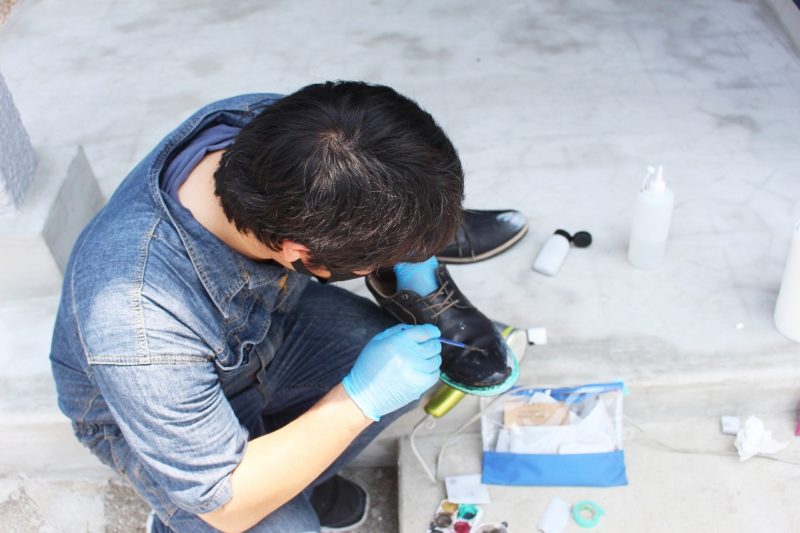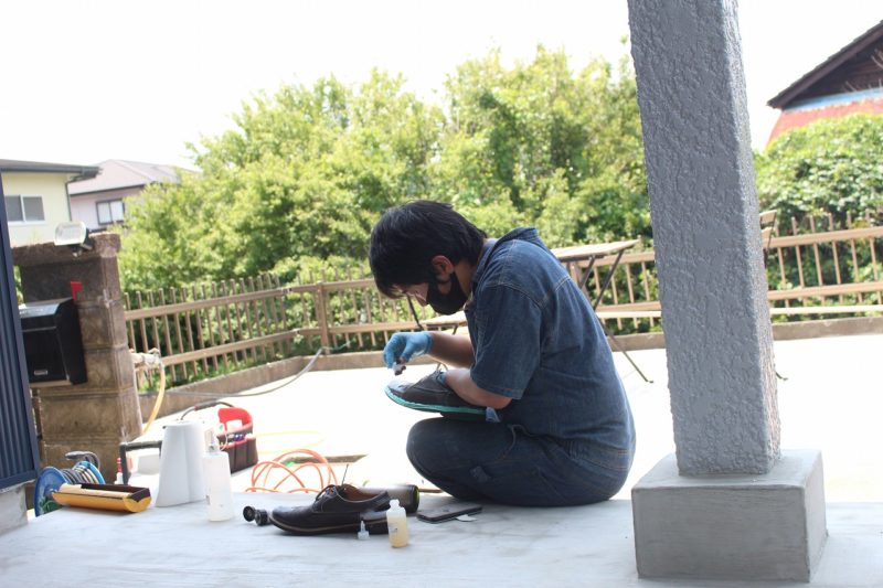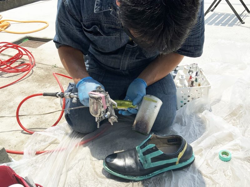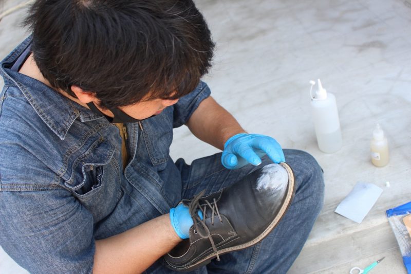 その後、専用の塗料で塗り上げていきます。革靴の補修って、こんな感じでするんですね。