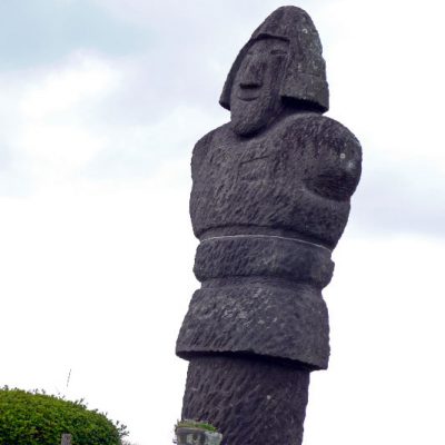 この辺りにはいくつかの古墳公園があるのですが、その中のひとつ「江田船山古墳公園」の入り口にそびえ立つのが「石人」と呼ばれる巨大なモニュメント。