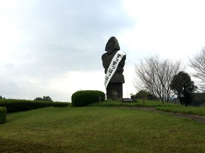 国史跡の古墳がある熊本県和水町の「江田船山古墳公園」の入り口付近にある、巨大な石人のモニュメント。