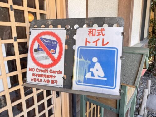 トイレが和式であることと、現金のみの注意書き。今の10代は和式のトイレを見ても、使い方がわからず困惑するそうですね。