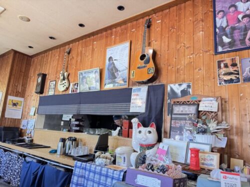 店内にはギターが飾られ、オフコースや小田和正さんのポスターがたくさん。