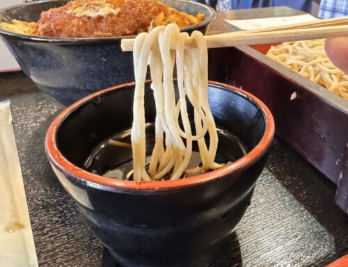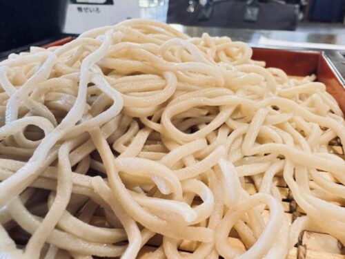 噛み込んでいくと、塩っぽい風味と蕎麦の香りがフワッとしてきます。つゆはシュッとした醤油の辛味が特徴、きりっとした舌触りで、熊本で馴染みのあるつゆとは違う気がします。