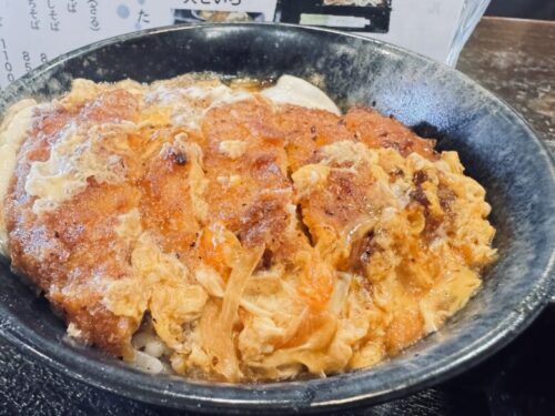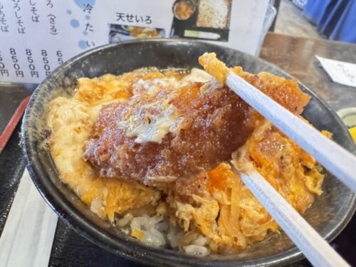 熱々のカツ丼を頬張り、そばで冷ます。食感の初々しさを損なわない順番を繰り返します。