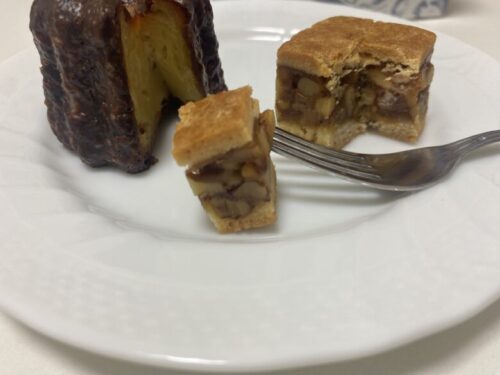 シェ・タニのカヌレはかなり洋酒が効いた、大人のスイーツ。外はカリっと、中はぎゅっ、もちっとした触感が楽しいですね。