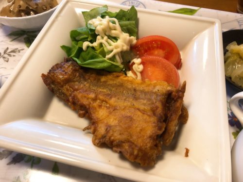 本日のメインは外はカリっと中はふわっと「鱈のフライ」でした。