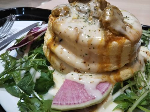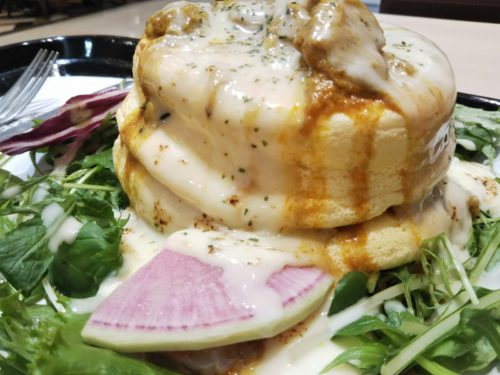その中で私が実食したのは、こちらの「スパイシーカレー チーズブリュレパンケーキ」!