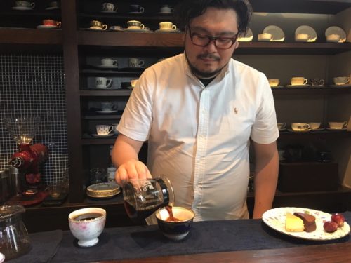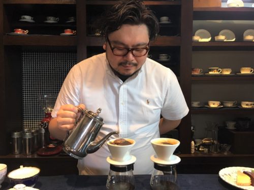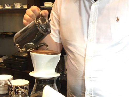 一杯ずつ、真剣な眼差しでゆっくりとお湯を注ぐマスター。