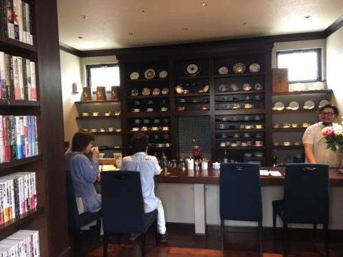 カウンターの対面には、図書館かと見まごうばかりの蔵書が並びます。