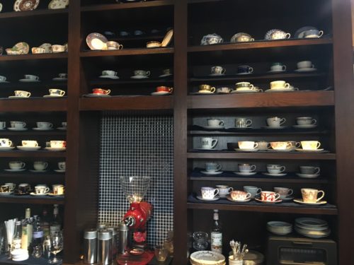 目の前にはカウンターと、壁には美しく並べられたコーヒーカップ。