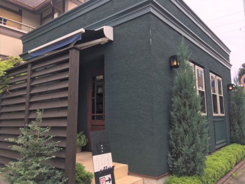 市民病院裏の住宅が立ち並ぶ路地に突如現れるおしゃれな建物。こちらが「Ellery珈琲店」です。深い緑色の外壁に、窓や庭木にいたるまで、すべてが洗練されています。