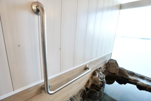バリアフリーに気を使われた、手すりが備え付けのお部屋もありました。高齢の方でも安心して入浴できそうです。