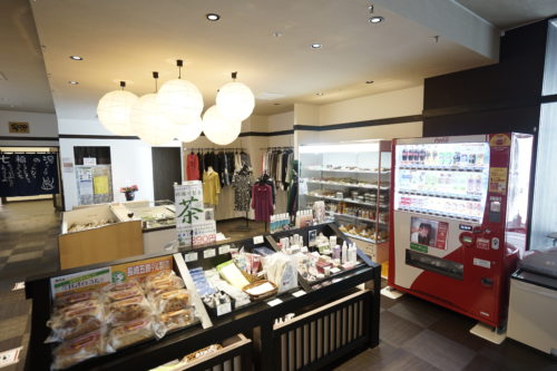 受付すぐ近くの売店には、熊本の名産品をはじめ様々な商品が並んでいます。