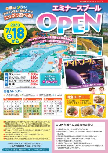 今年もエミナースプールは、7月18日から8月31日までは休みなく営業されます。