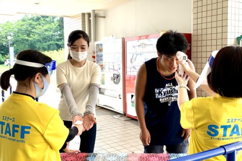 まずは入り口手前に検温・消毒ブースが用意されていますので、こちらで検温です。