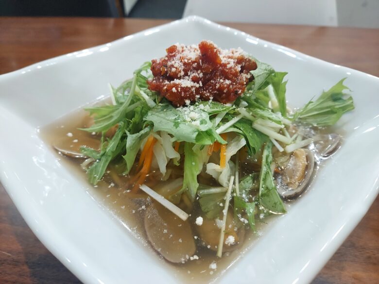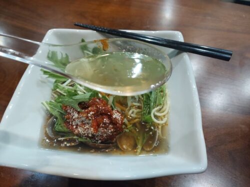 冷やしのスープはあっさりとした塩味とコクが印象的でしたが、温かいスープは野菜の旨味が溶け出し、より鶏ガラスープのコクを感じられる味わいでした。