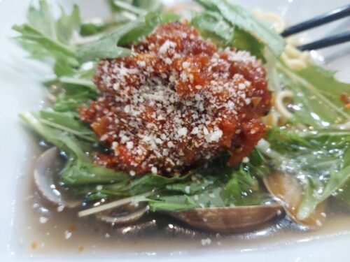 アラビアータ風のトマトソース×ボンゴレ、ちゃんぽんを食べているはずがイタリアンを食しているかのような感覚になりました。