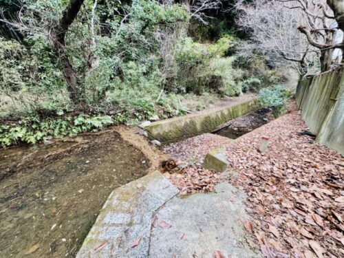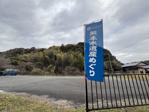 田原坂公園から車で10分くらいの場所。まわりには民家がぽつりぽつりとありますが、車も人通りもほとんどない場所でした。熊本水遺産めぐりの旗がある場所が広い駐車場となっておりました。