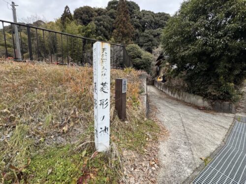 そのすぐ横に「菱形の池」という目印があり、細い道へ歩いて入ってゆきます。