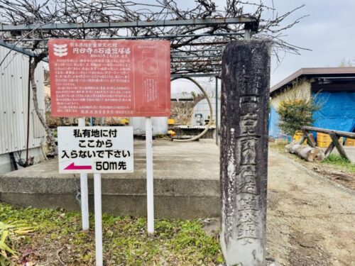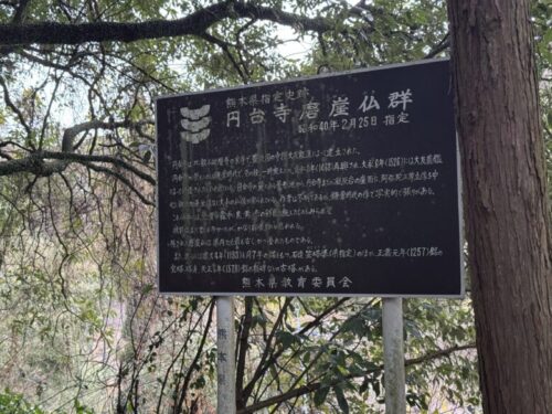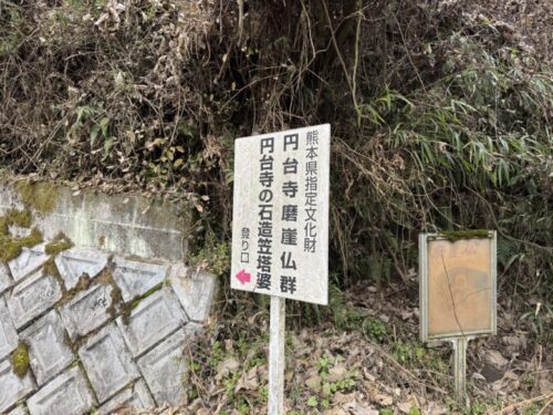 このような看板がありました。「円台寺磨崖仏群」(えんだいじまがいぶつぐん)と「円台寺の石造笠塔婆」(えんだいじのせきぞうかさとうば)。熊本指定文化財とのことで、これは行ってみないと。