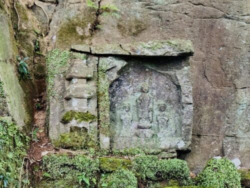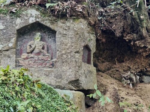 県内で最も古く、作者不明という事がさらにミステリー。菱形の池からここまで、もっとたくさんの崖仏群があった事を想像すると、ものすごい光景です。しかも黒、赤、黄なども色も付いていたとなると、かなりの賑やかさです。