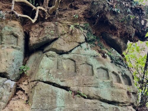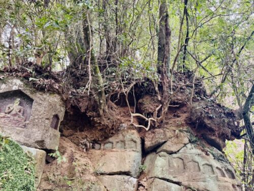 昔は500もの磨崖仏であったと言われており、現在は170程。しかし170もあるかなぁという印象でした。この窓のような所に石仏がもっとあったかと思われます。