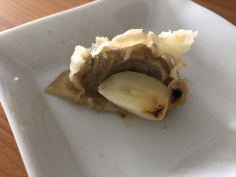 その大きさは、餃子の半分以上。焼いた時に、ニンニクが一片入っているなんて誰が想像したでしょうか。こんなインパクトがあり過ぎる餃子は、作っている人に話を聞きに行かないともったいない。