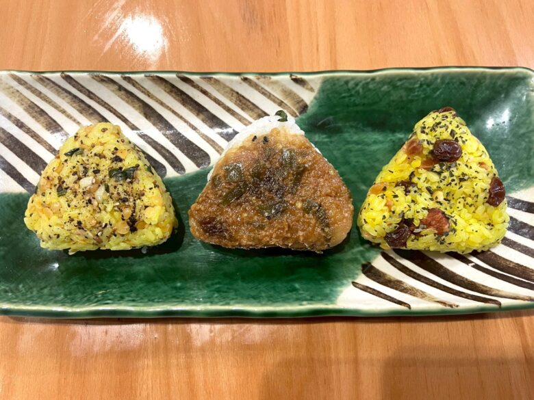 左から、レモンライス、青唐辛子みそ、名もなきおにぎりの3種です。
