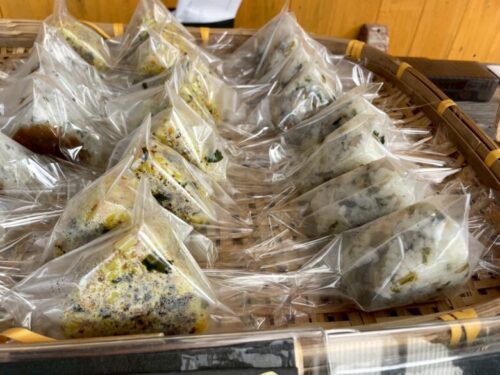 風邪予防効果も期待できるという、れんこんと大根葉のおにぎりや、青唐辛子みそのおにぎりなど、具材がたくさん入ったおにぎりがいろいろ…。