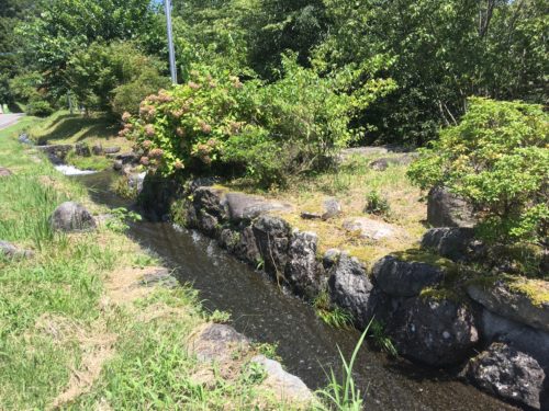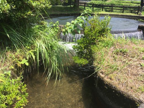 このように、分水から2つの水路に分かれて水が送られていきます。