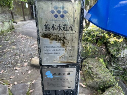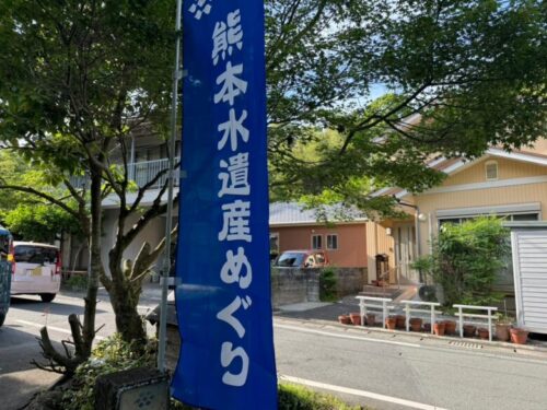 住宅街を車で走っていると、熊本水遺産の旗があり、「延命水」という湧き水の地を見つけました。