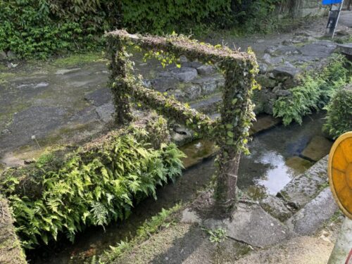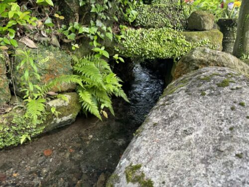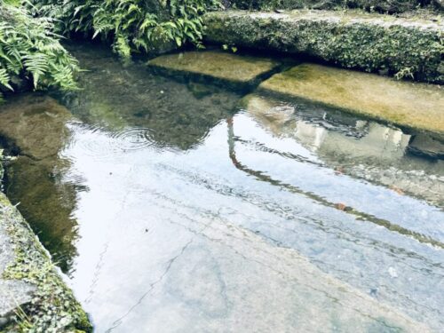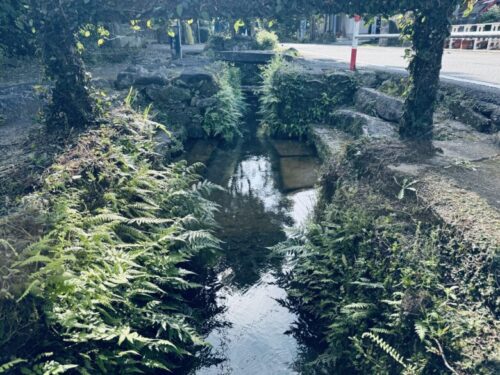 ちょっと分かりにくいですが、道路側よりもさらに美しい水が降りてきています。ここで昔は食器を洗っていたそうです。