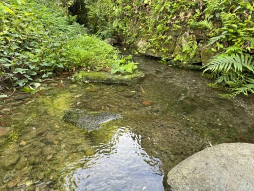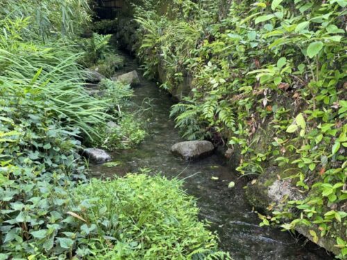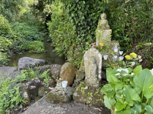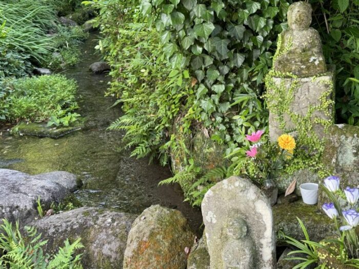 わ!お地蔵さんの横にずーっと奥まで流れがありました。始まりはどこから流れてきているんでしょう。とても綺麗です。